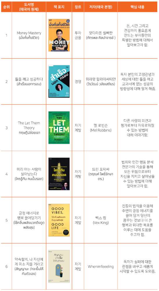 태국 출판시장 리포트: Z세대가 주도하는 디지털 전환과 IP 기반 미디어 믹스 태국 출판시장은 2025년 하반기 현재 Z세대를 주축으로 한 디지털 전환의 가속화와 강력한 IP 기반의 미디어 믹스 전략을 통해 새로운 도약기를 맞이하고 있습니다. 이번 보고서에서는 태국 최대 유통망인 SE-ED Book의 데이터와 최신 트렌드 원문을 상세히 전해드립니다. 12월 태국 출판시장 보고서 코디네이터 | 이현경 베스트셀러 순위 ...