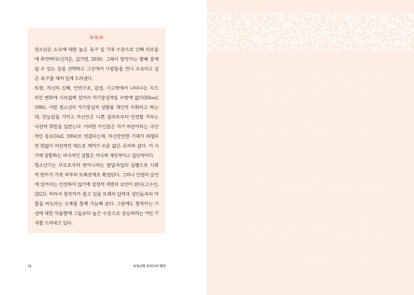 이 책은 난화를 통해 무의식이 어떻게 의식으로 다가오는지, 그 과정에서 우리가 스스로를 어떻게 이해하고 받아들일 수 있는지를 따뜻하고 섬세하게 풀어냅니다. 저자와 수련생, 그리고 독자들이 남긴 다양한 난화 작업이 함께 실려 있어, 읽는 이들이 직접 그림과 이야기를 마주하며 무의식의 언어를 경험할 수 있습니다.