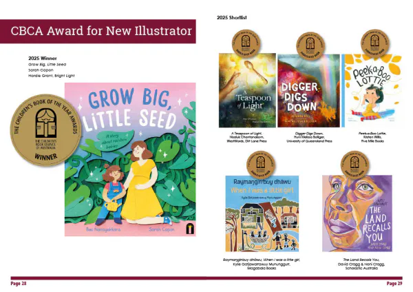 신인 일러스트레이터에게 수여되는 상은 사라 캐폰(Sarah Capon)의 《커다랗게 자라라, 작은 씨앗아》(Grow Big, Little Seed)가 차지했다. 총 47편이 출품되었으며, 종이 콜라주, 디지털 아트, 아크릴화, 수채화 등 다양한 기법이 활용되었다. 빛과 색채의 표현, 원주민적 요소와 현대적 스타일의 융합, 참신한 구도와 시각적 실험이 높이 평가되었다. 신인 일러스트레이터들의 작품 수준이 매우 높아 심사 과정이 특히 치열했으며, 향후 이들이 호주 아동문학의 일러스트레이션 분야를 더욱 풍성하게 할 것이라는 기대가 크다.