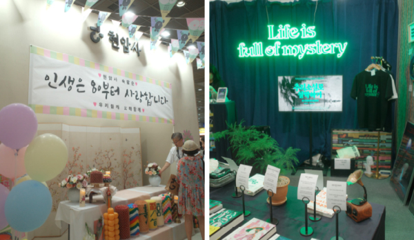 성황리에 사인회를 끝낸 뒤에야 한숨 돌리며 필자도 행사장을 둘러보았다. 번뜩이는 아이디어로 부스를 꾸미고 열의를 다해 독자들을 맞이하는 여러 출판사의 모습을 보며 축제 분위기에 흠뻑 취할 수 있었다. 화려하고 멋지게 꾸민 부스에 대한 부러운 마음과 함께 내년 도서전에서 반영할 만한 요소를 살펴보았다. 개인적으로 인상적이었던 부스는 창립 80주년을 맞아 팔순 잔치 콘셉트로 부스를 꾸민 현암사와 주요 출간 분야인 추리 소설의 특징을 살려 미스터리한 분위기로 공간을 연출한 나비클럽이었다.