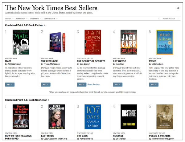 <뉴욕타임스> 온라인판의 베스트셀러 목록